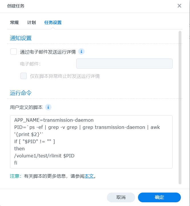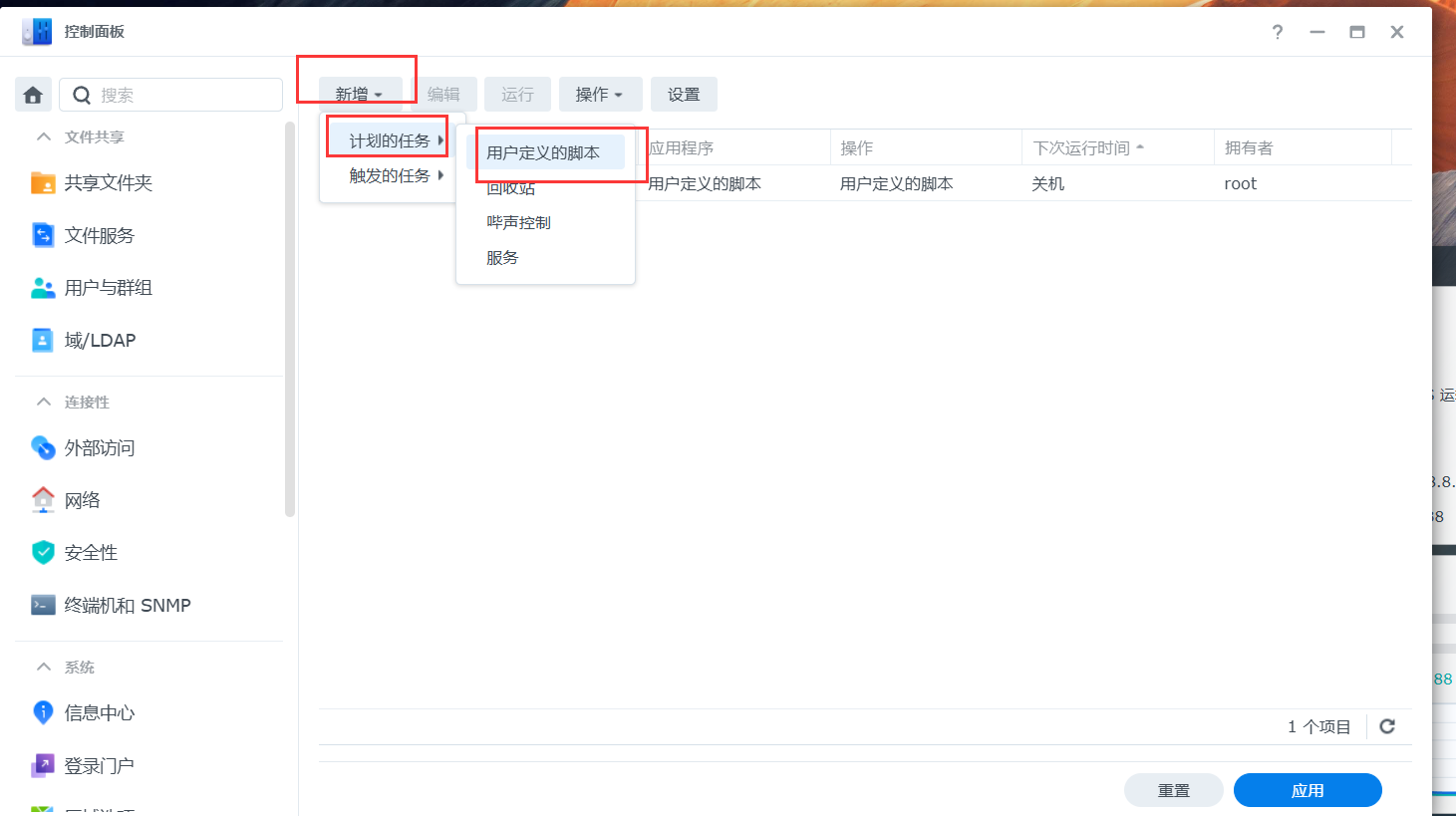 控制面板——任务计划——新增——计划的任务——用户定义的脚本