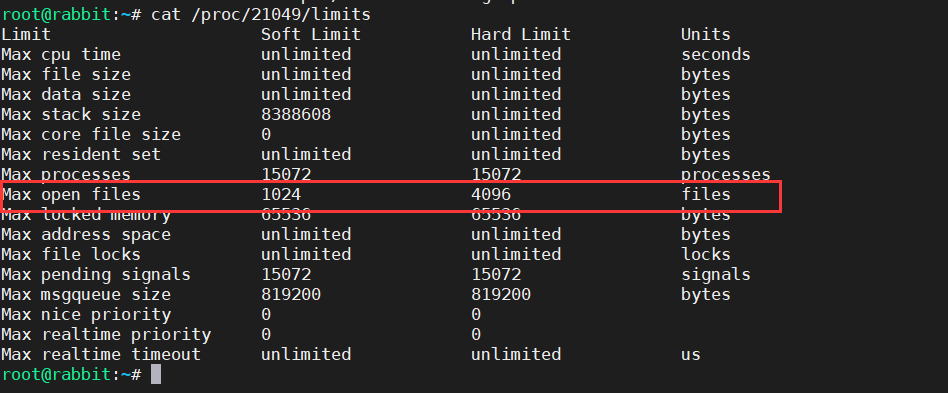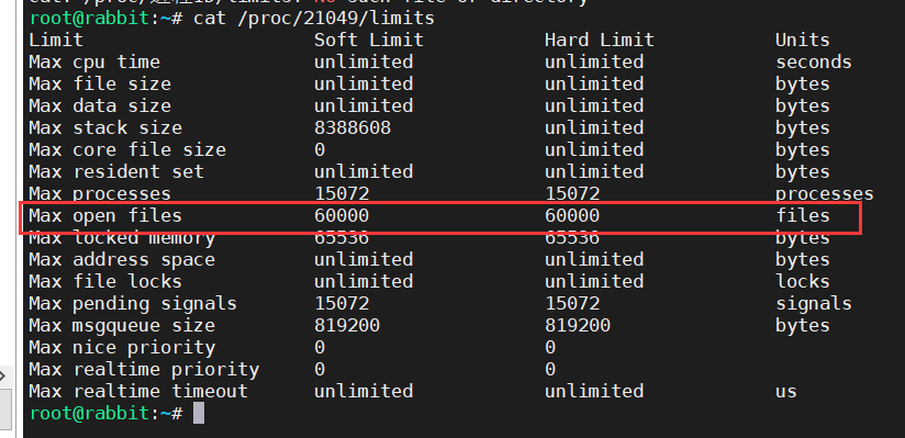 我这边为cat /proc/21049/limits